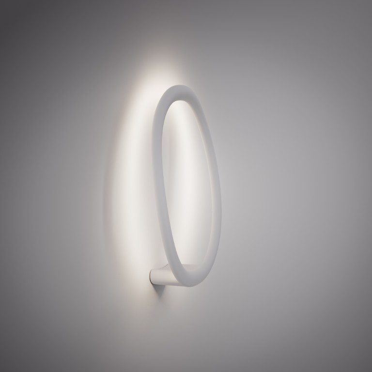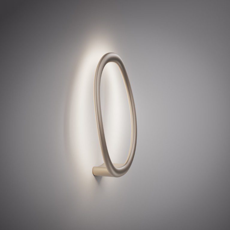 Progettata da Patrick Jouin, OR è una linea luminosa, un gioco di anelli che si sfiorano, si incrociano e si sovrappongono. Vista di fronte, una silhouette decisa, una linea pura. Vista in movimento, la percezione cambia: emerge la profondità, gli anelli si separano, scivolando l’uno nell’altro. La luce morbida e diffusa abbraccia la parete, proiettando ombre sottili, delineando contorni in continua evoluzione. Disponibile nella versione singola (OR1) parete e soffitto, con dimensioni di 46 cm x 40,5 cm, o nella configurazione doppia (OR2), con due anelli incrociati di 60 x 70,5 cm, la lampada si adatta e si trasforma, creando installazioni luminose su misura. Il diffusore decorativo, in poliuretano verniciato, è disponibile nelle finiture argento e ottone.
