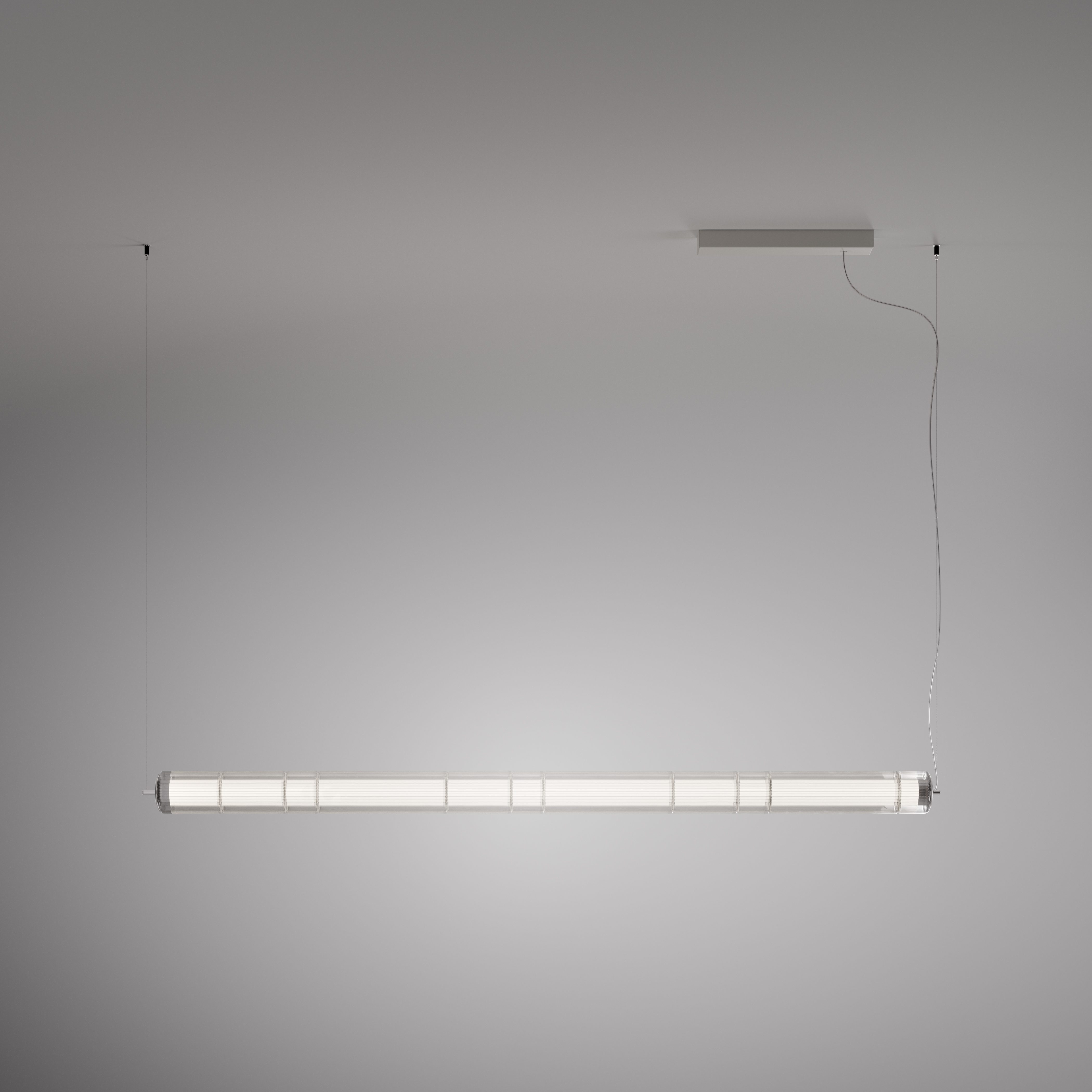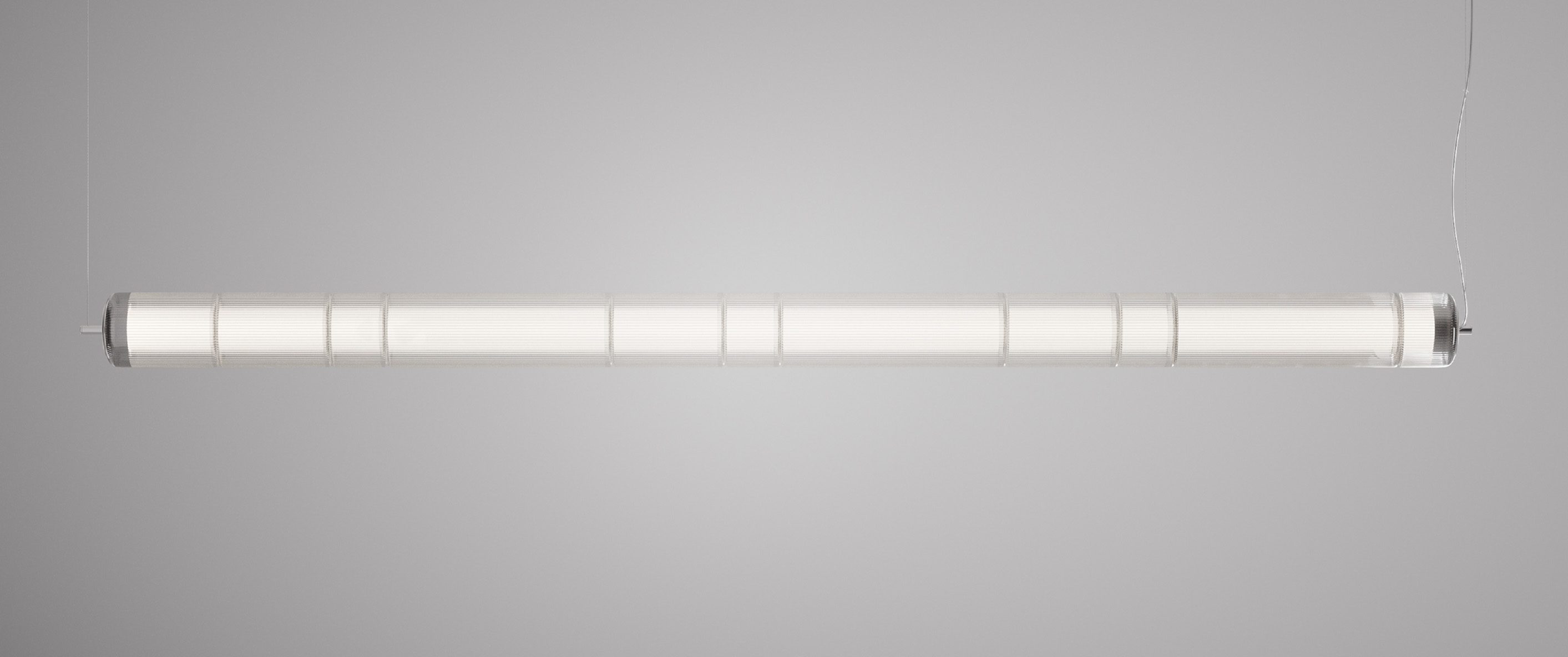 Progettata da Rockwell Group, la Collezione Stacking unisce tecnologia all'avanguardia e tecniche tradizionali di lavorazione del vetro. Comprende tre serie di lampade da terra e una serie di lampade a sospensione orizzontali e verticali. La versione da terra è stata disegnata nel 2007 e rende omaggio alla ricca tradizione vetraria veneziana che utilizza la tecnica chiamata “incamiciato”: abili maestri vetrai sovrappongono vetri con proprietà distinte, creando un affascinante mosaico di colori e opacità dando vita a inaspettate sinergie di luce. Questa tecnica ad alta intensità di lavoro crea diversi colori e opacità in ciascun modulo di vetro. Quando questi moduli cilindrici si accostano e si sovrappongono, un accattivante mix di colori proietta una sofisticata luce su tutto l'ambiente circostante. Nel 2023, alla collezione "terra" si aggiungono le lampade a sospensione. Stacking S è composta da un corpo cilindrico con diffusore centrale alimentato da 5 strip LED di alta qualità. Gli elementi decorativi sono una composizione di vetri dalle diverse lunghezze in borosilicato soffiato. Elementi in alluminio tornito dal pieno posti alle due estremità della lampada servono come chiusura e punti di fissaggio per la sospensione. È disponibile anche la versione “Naked” (senza vetro decorativo). Con tre diverse misure per la versione verticale e due per l'orizzontale, la gamma a sospensione può funzionare in composizioni multiple e creare forme di luce belle e affascinanti.