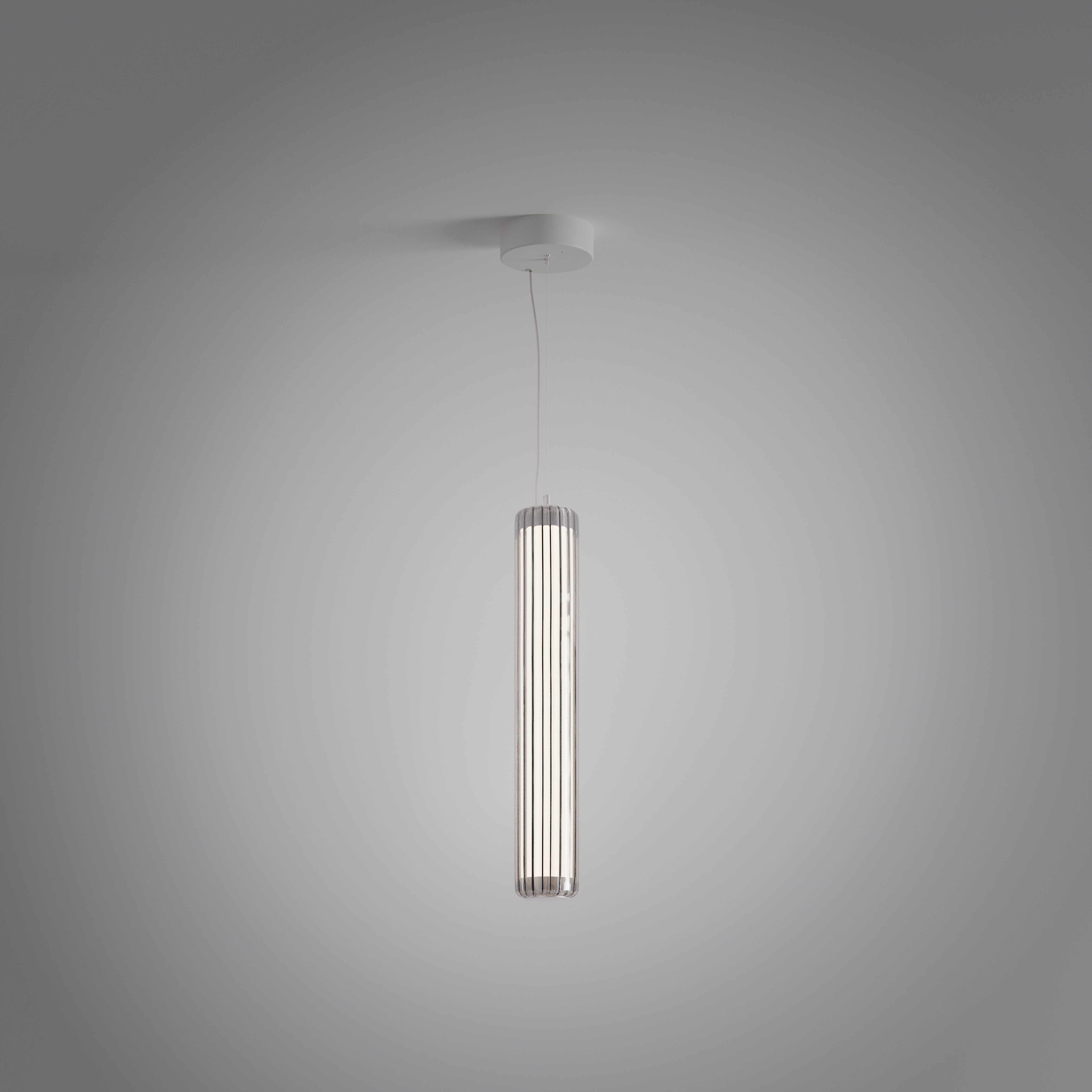 Progettata da Rockwell Group, la Collezione Stacking unisce tecnologia all'avanguardia e tecniche tradizionali di lavorazione del vetro. Comprende tre serie di lampade da terra e una serie di lampade a sospensione orizzontali e verticali. La versione da terra è stata disegnata nel 2007 e rende omaggio alla ricca tradizione vetraria veneziana che utilizza la tecnica chiamata “incamiciato”: abili maestri vetrai sovrappongono vetri con proprietà distinte, creando un affascinante mosaico di colori e opacità dando vita a inaspettate sinergie di luce. Questa tecnica ad alta intensità di lavoro crea diversi colori e opacità in ciascun modulo di vetro. Quando questi moduli cilindrici si accostano e si sovrappongono, un accattivante mix di colori proietta una sofisticata luce su tutto l'ambiente circostante. Nel 2023, alla collezione "terra" si aggiungono le lampade a sospensione. Stacking S è composta da un corpo cilindrico con diffusore centrale alimentato da 5 strip LED di alta qualità. Gli elementi decorativi sono una composizione di vetri dalle diverse lunghezze in borosilicato soffiato. Elementi in alluminio tornito dal pieno posti alle due estremità della lampada servono come chiusura e punti di fissaggio per la sospensione. È disponibile anche la versione “Naked” (senza vetro decorativo). Con tre diverse misure per la versione verticale e due per l'orizzontale, la gamma a sospensione può funzionare in composizioni multiple e creare forme di luce belle e affascinanti.