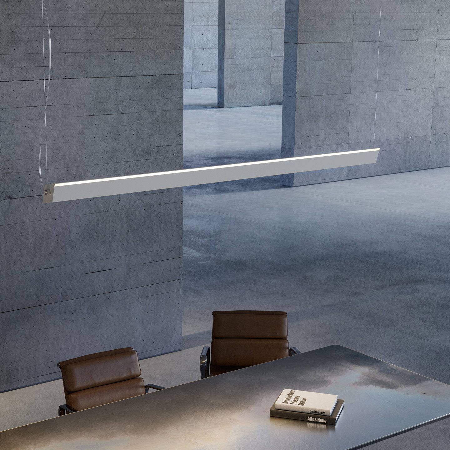 Stripe è la prima collezione senza vetro di LEUCOS, firmata da Mayice Studio. Un sistema in metallo dal design essenziale, Stripe interagisce con lo spazio attraverso riflessi, rotazioni e giochi di luce. Le sue silhouette minimali, caratterizzate da una sezione a diamante e disponibili in acciaio inox e in finiture in metallo verniciato, si integrano su pareti, soffitti e pavimenti. Il trattamento in acciaio inox spazzolato amplifica l'effetto della luce, riflettendola e diffondendola in più direzioni, creando tracciati luminosi che si espandono nello spazio. Nella versione sospesa verticale con contrappeso, il corpo metallico può scorrere verticalmente e ruotare su sé stesso, aggiungendo un ulteriore livello di interazione e flessibilità alla sua presenza luminosa. Disponibili anche le versioni a parete e soffitto, terra, sospensione orizzontale. Più che una semplice lampada, Stripe esplora il dialogo tra luce e metallo, trasformando l'ambiente attraverso riflessi in continua evoluzione.