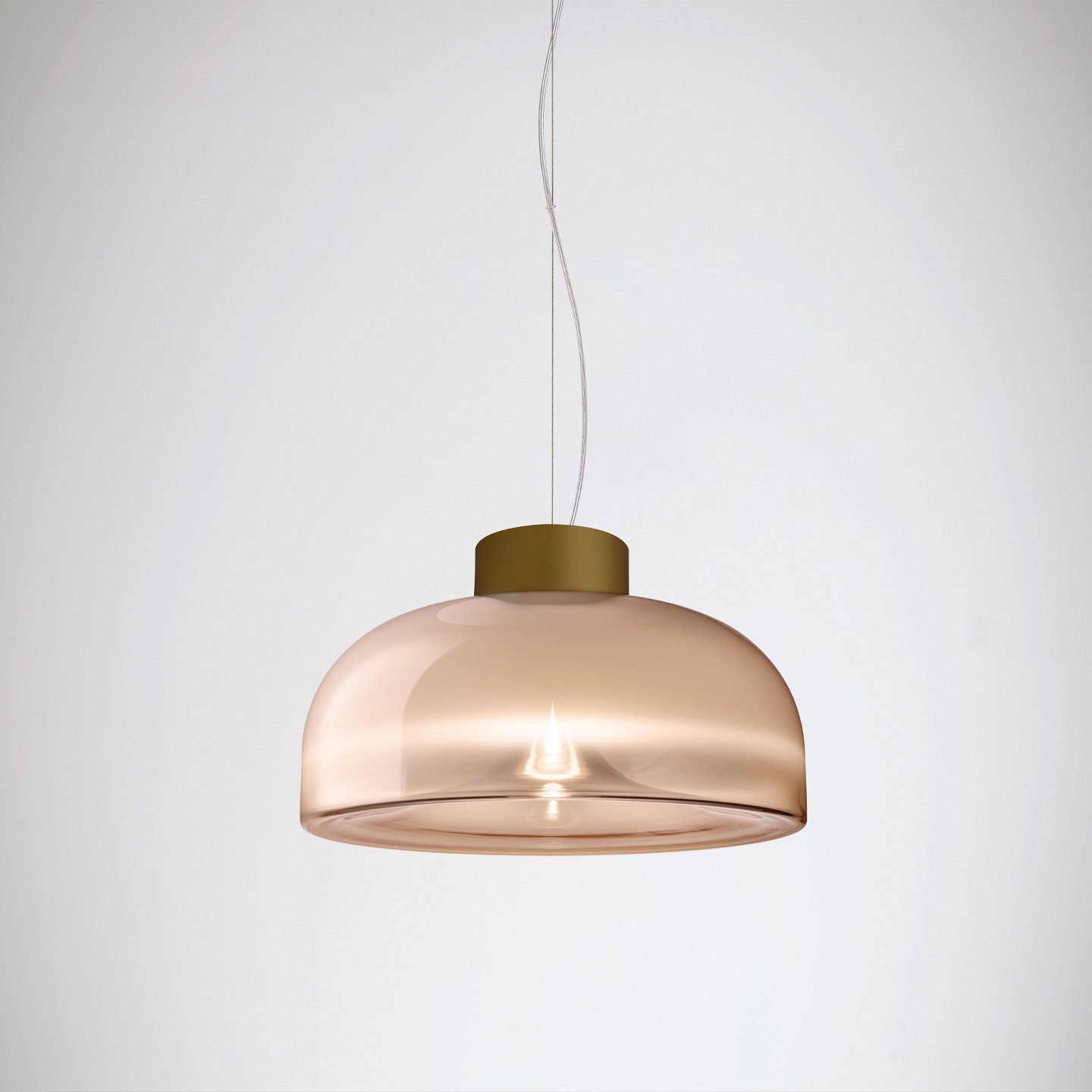 Aella is the ‘whirlwind’, embodied by the dynamic movement captured in its handblown glass diffuser. Emanating from the single point, an evanescent light cone grows to create sinuous patterns and harmonic reflections. Designed in 1968 by Toso and Massari, this table and suspension lamps collection incorporates the essential and timeless design principles, characteristic of Leucos’ products. Available in two sizes for the table and suspension versions (Ø30 and Ø54 cm - Ø11 3/4” and Ø21 1/4”) with transparent or smoked glass diffuser. Structure in 4 finishes for the Ø54 cm version (glossy chrome, glossy warm white, vintage brass, matt gunmetal) and 3 finishes for the Ø30 cm version (glossy chrome, glossy warm white and glossy gunmetal) with matching canopy in the same color for the pendant version. The LED light source (Aella S 54 e Aella T 54) can be easily replaced by the user.