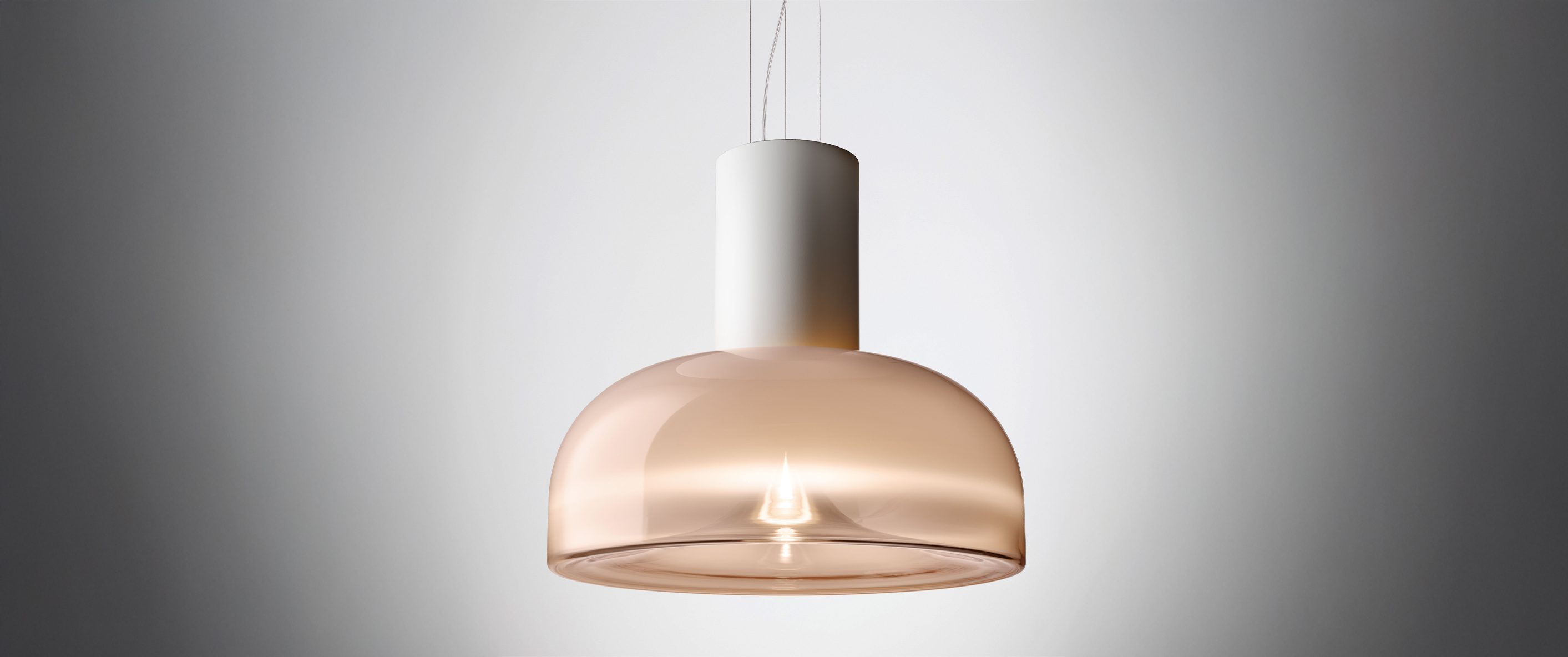 Aella is the ‘whirlwind’, embodied by the dynamic movement captured in its handblown glass diffuser. Emanating from the single point, an evanescent light cone grows to create sinuous patterns and harmonic reflections. Designed in 1968 by Toso and Massari, this table and suspension lamps collection incorporates the essential and timeless design principles, characteristic of Leucos’ products. Available in two sizes for the table and suspension versions (Ø30 and Ø54 cm - Ø11 3/4” and Ø21 1/4”) with transparent or smoked glass diffuser. Structure in 4 finishes for the Ø54 cm version (glossy chrome, glossy warm white, vintage brass, matt gunmetal) and 3 finishes for the Ø30 cm version (glossy chrome, glossy warm white and glossy gunmetal) with matching canopy in the same color for the pendant version. The LED light source (Aella S 54 e Aella T 54) can be easily replaced by the user.