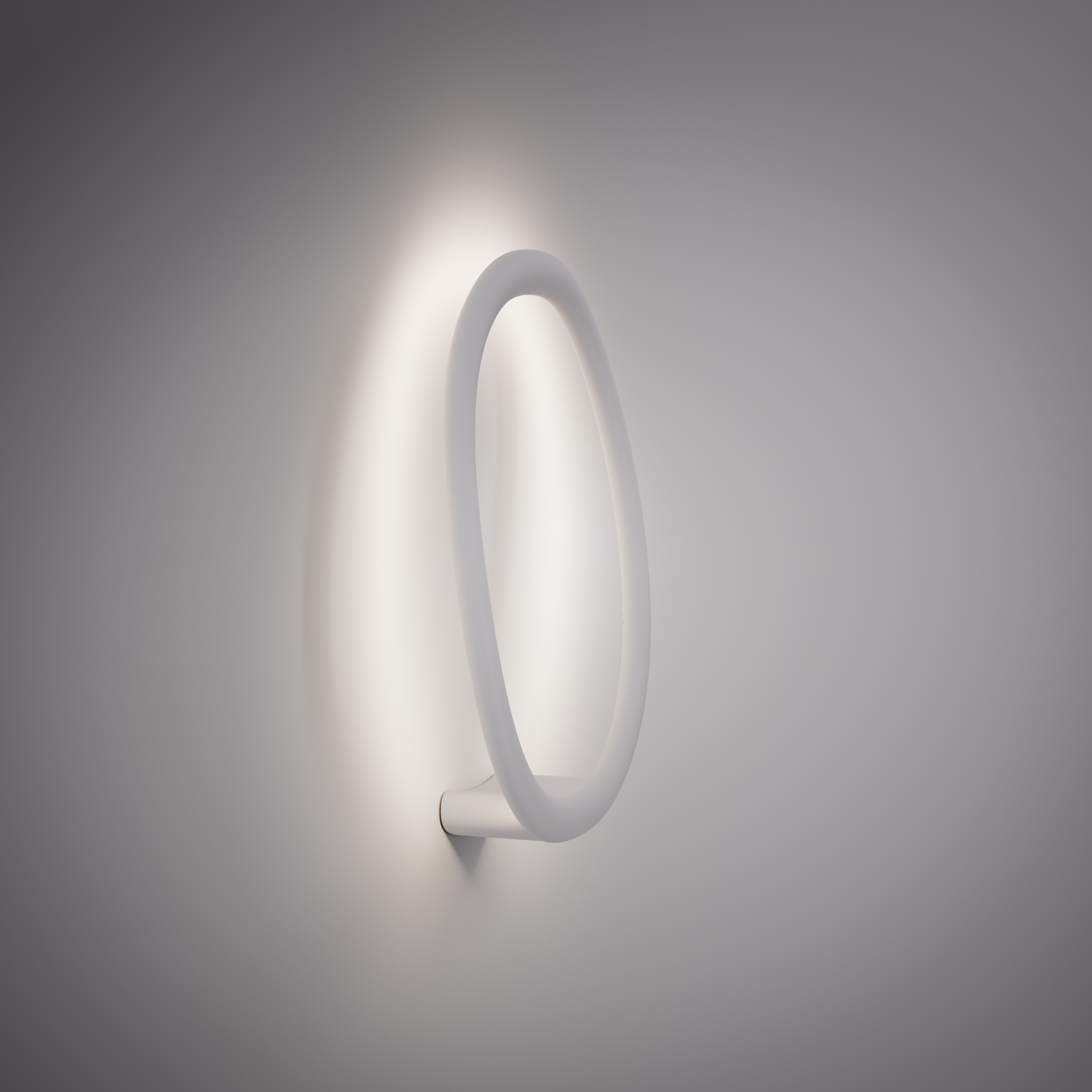 Designed by Patrick Jouin, OR is a luminous line, a play of overlapping, intersecting, and interlocking rings. Viewed from the front, it appears as a bold, pure line. In motion, perception shifts—depth emerges, the rings separate, and slide into one another. Its soft, diffused light embraces the wall, casting subtle shadows and defining contours in constant evolution. Available in a single wall and ceiling version (46 cm x 40.5 cm) or a double configuration (two crossed rings, 60 cm x 70.5 cm), OR adapts and transforms, creating custom luminous compositions. The decorative diffuser, in painted polyurethane, is offered in silver and brass finishes.