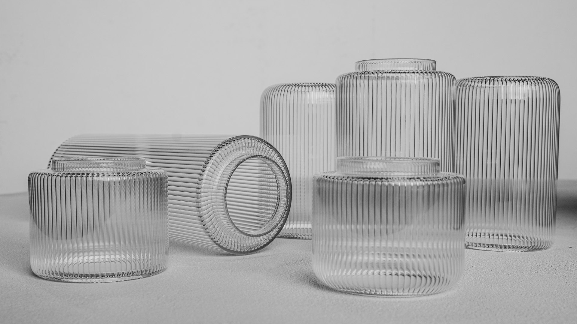 After defining its signature aesthetic through iconic floor and suspension versions, David Rockwell expands the modular language of Stacking with new wall and ceiling applications featuring single-glass variations. The collection grows with two new applications, available in 30 cm and 60 cm heights (both with a Ø10 cm profile, matching the suspension versions), installable both vertically and horizontally, allowing for unique luminous effects in any setting. The blown borosilicate glass diffuser, available in stacked cylindrical modules or as a single-glass variation, comes in transparent, ribbed, painted, or PVD finishes, combined with an anodized aluminum or matte black wrinkled metal structure. The new transparent ribbed glass option adds a distinctive striped texture, enhancing the dynamic and evocative interplay of light. With this evolution, the Stacking collection offers even greater versatility, turning light into a defining architectural element within a space.