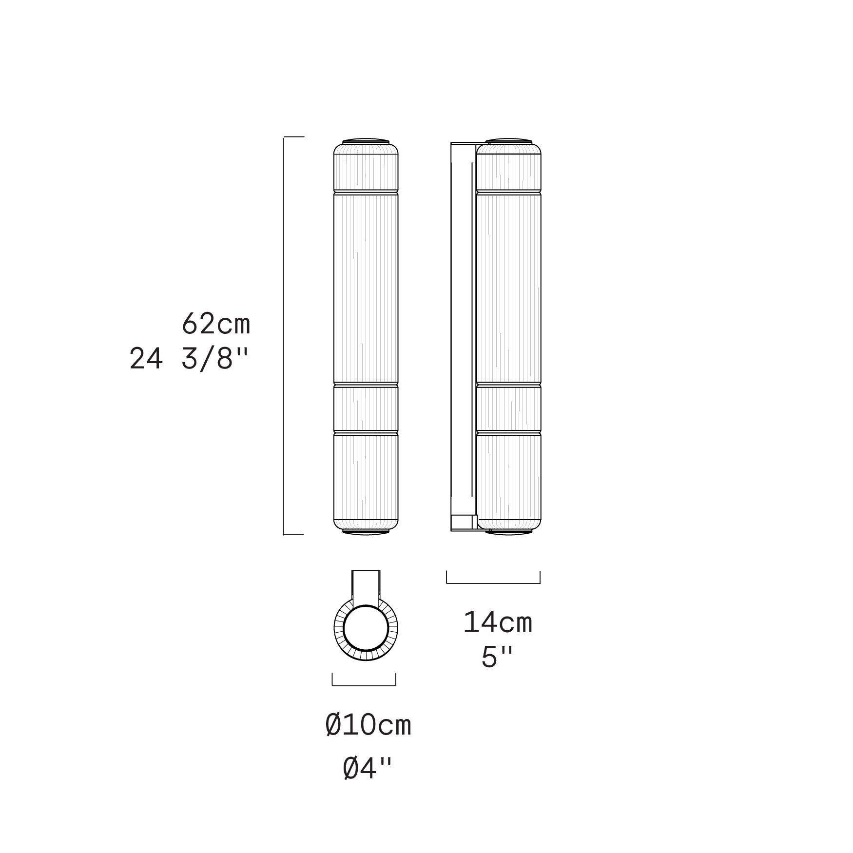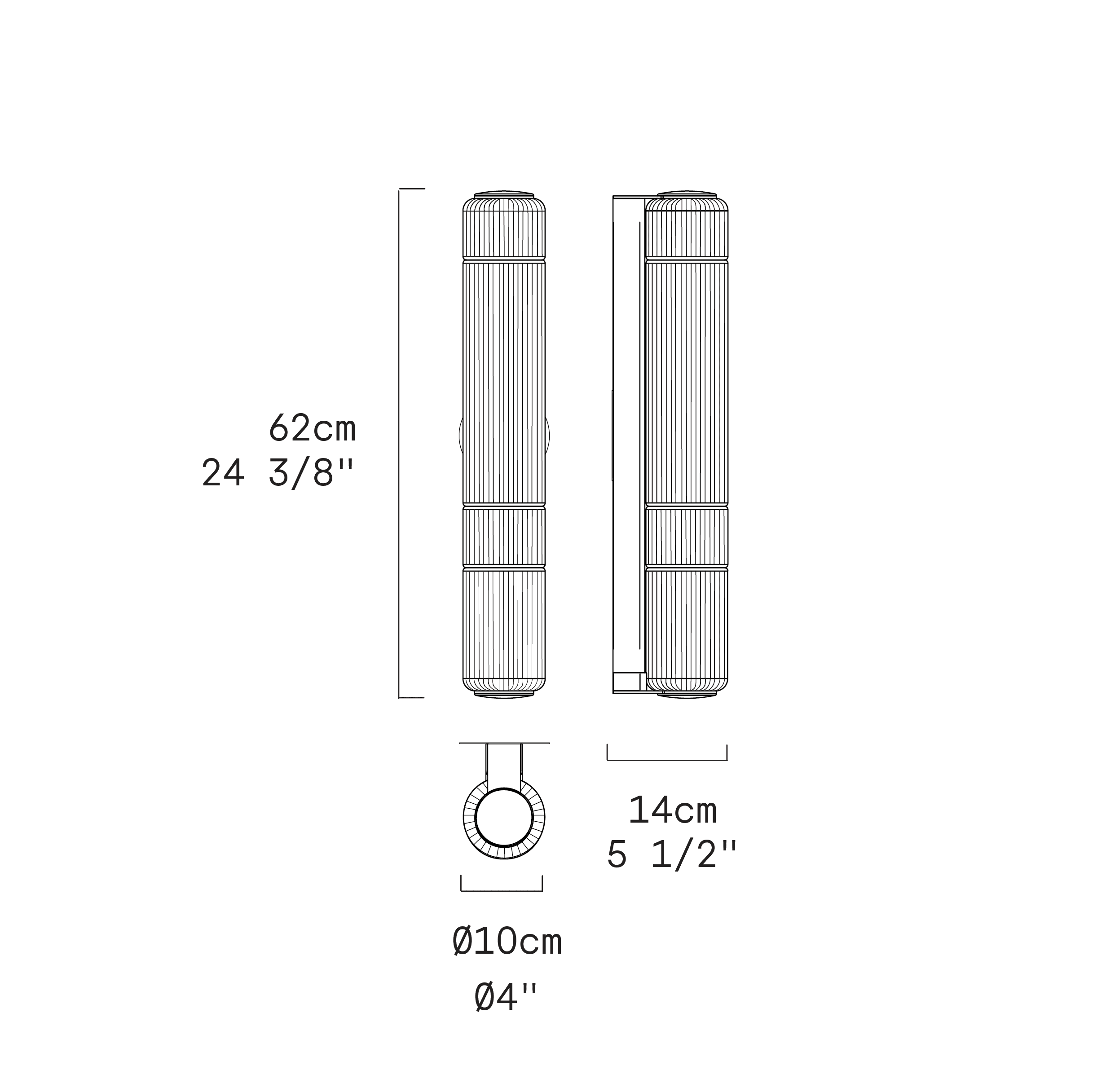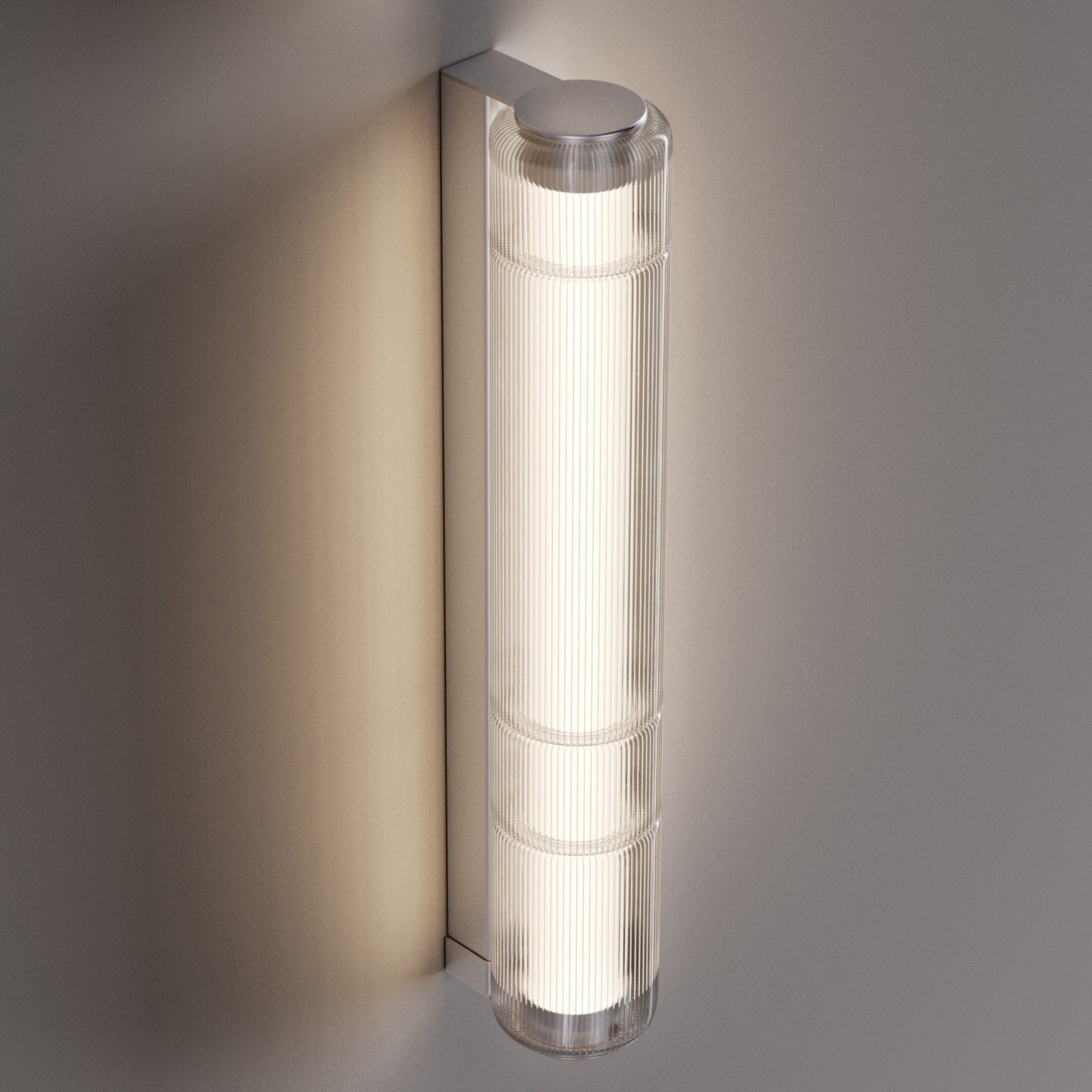 After defining its signature aesthetic through iconic floor and suspension versions, David Rockwell expands the modular language of Stacking with new wall and ceiling applications featuring single-glass variations. The collection grows with two new applications, available in 30 cm and 60 cm heights (both with a Ø10 cm profile, matching the suspension versions), installable both vertically and horizontally, allowing for unique luminous effects in any setting. The blown borosilicate glass diffuser, available in stacked cylindrical modules or as a single-glass variation, comes in transparent, ribbed, painted, or PVD finishes, combined with an anodized aluminum or matte black wrinkled metal structure. The new transparent ribbed glass option adds a distinctive striped texture, enhancing the dynamic and evocative interplay of light. With this evolution, the Stacking collection offers even greater versatility, turning light into a defining architectural element within a space.