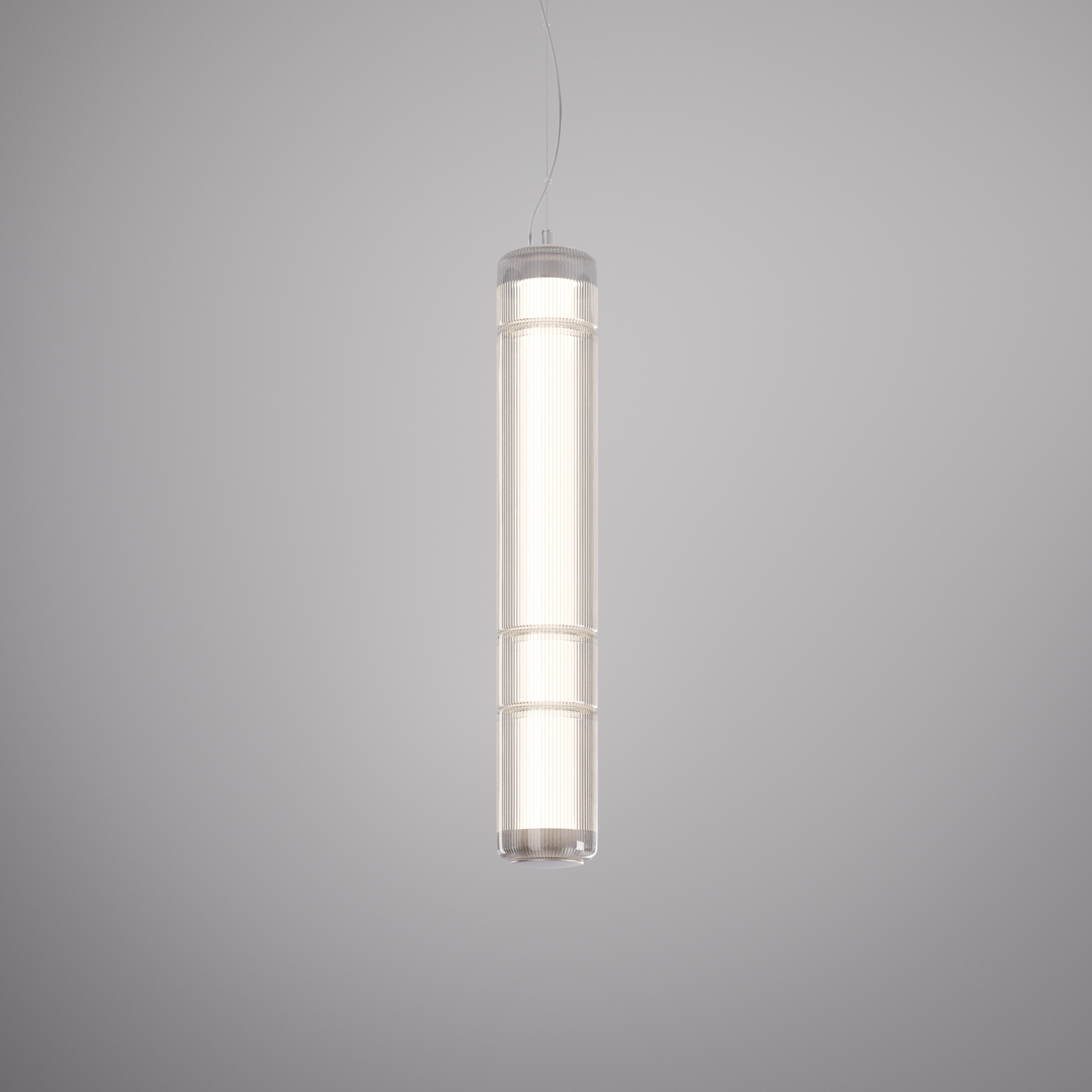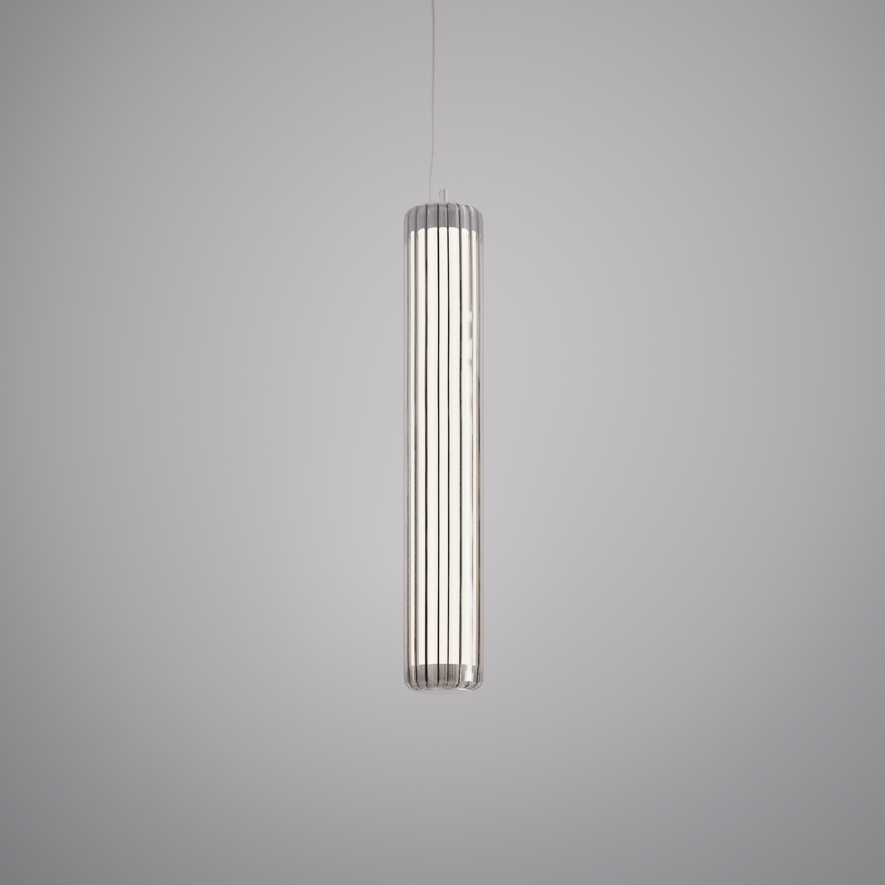 Designed by Rockwell Group, the Stacking Collection merge cutting-edge technology and traditional glassmaking techniques. It includes three sets of floor lamps and a series of horizontal and vertical pendant lights. Designed by Rockwell Group, the Stacking Collection merge cutting-edge technology and traditional glassmaking techniques. It includes three sets of floor lamps and a series of horizontal and vertical pendant lights. The floor version was conceived in 2007 and pays homage to the rich Venetian glassmaking tradition employing the “incamiciato” technique (Italian for “jacketed” or “layered”), which requires skilled glassblowers layer multiple glasses during the blowing process. This labor-intensive technique builds up different colors and opacities in each module. When these cylinder modules are combined and overlaps, a captivating mixture of colors cast a  sophisticated ambient light. Sixteen years later, the suspended lamps are added to the collection. Stacking S is composed of a cylindrical diffuser powered by 5 high-quality LED strips. The decorative elements are made out of blown borosilicate glass. Machined aluminum end-caps keep everything together and act as suspension anchoring points. The "Naked" version without decorative glass is also available. With three different sizes for vertical versions and two for horizontal version, the suspended range can work in clusters and create beautiful and fascinating shapes of lights.