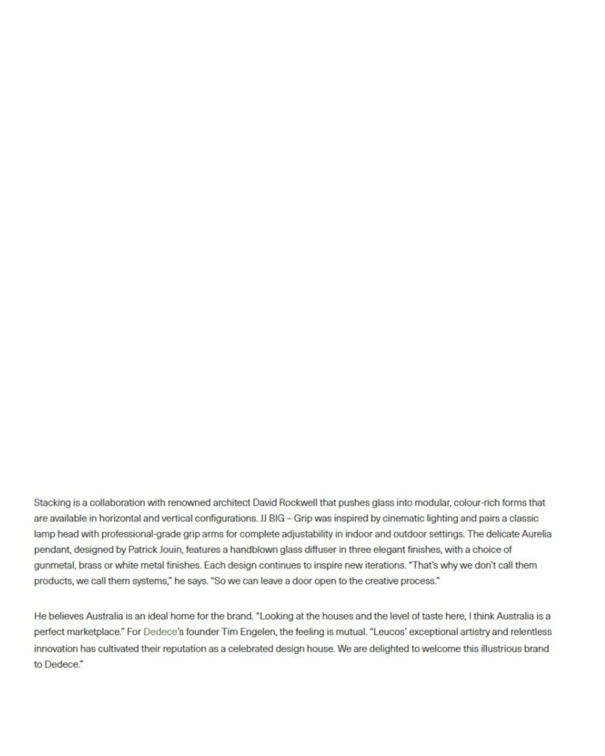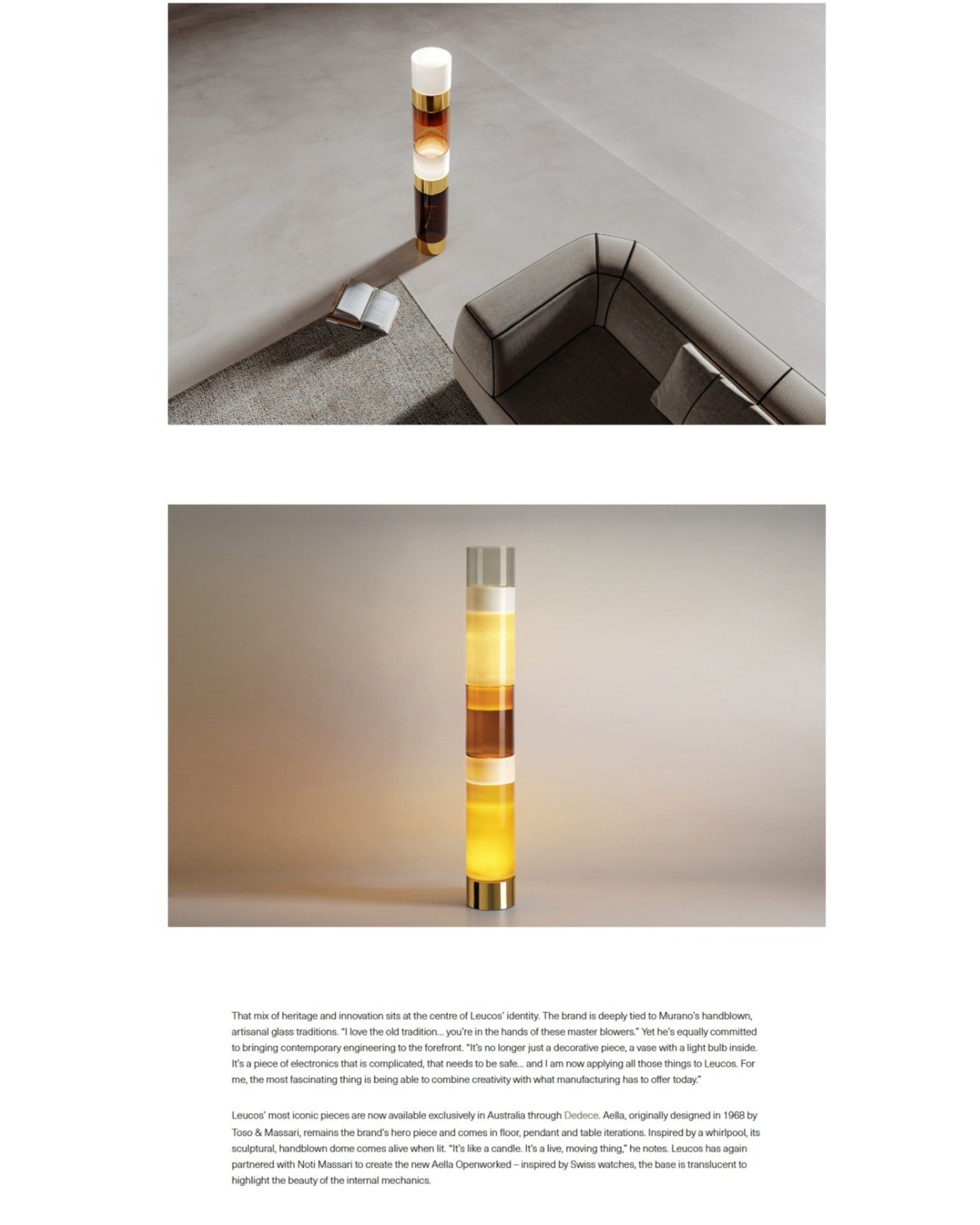 “Leucos, leggendario brand di illuminazione italiano, debutta in Australia portando la sua fusione di artigianato veneziano e innovazione contemporanea da Dedece.”